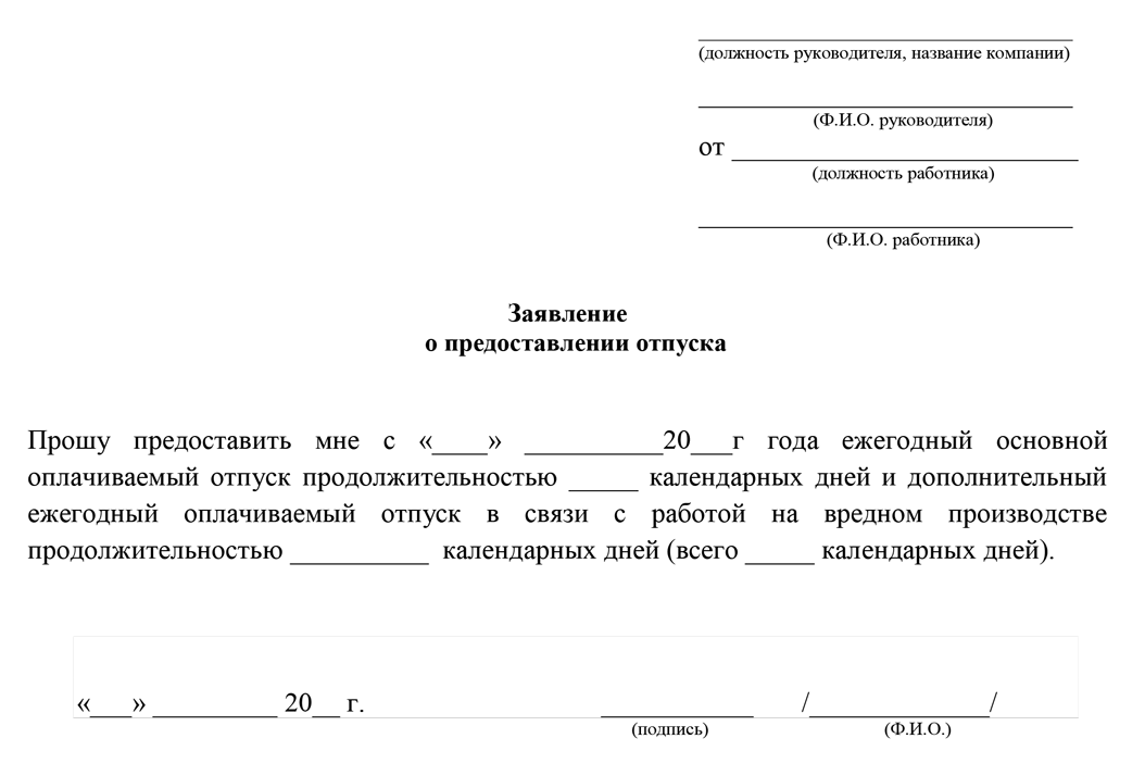 Заявление на дополнительный отпуск: вредные условия труда