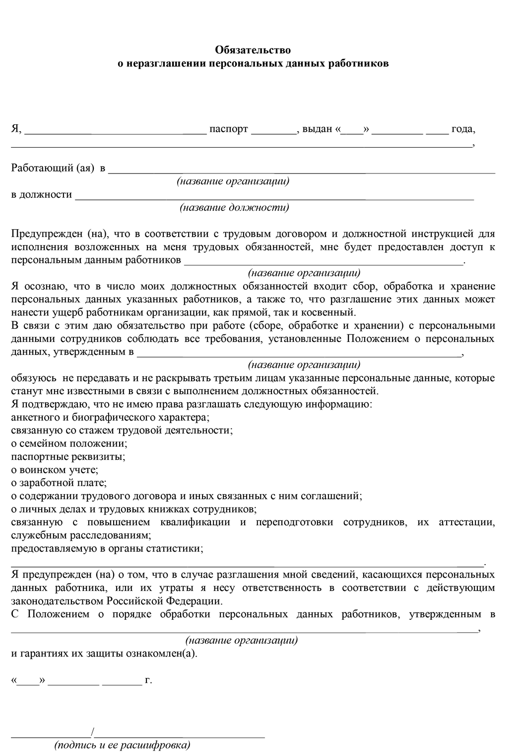 Используется:Для защиты персональных данных работников. Подписывается при приеме на работу сотрудника, которому будет предоставлен доступ к персональным данным