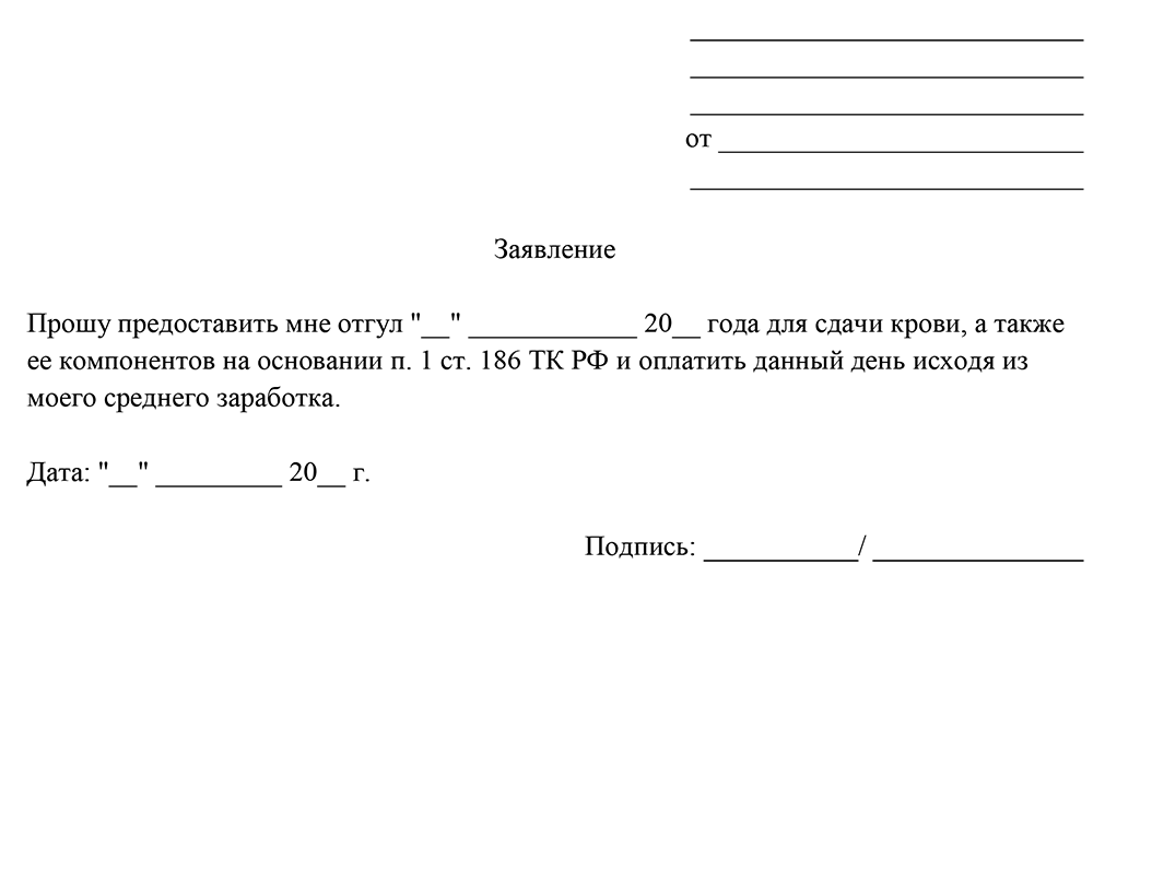 Заявление для предоставления дня отдыха в связи со сдачей крови