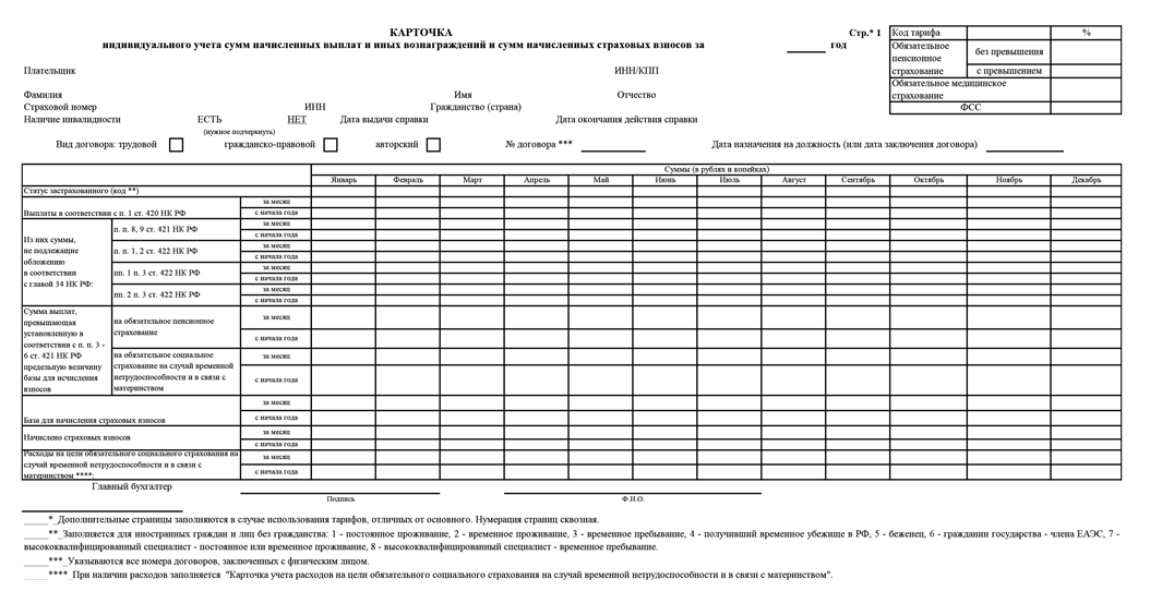 Карточка индивидуального учета начисленных выплат и страховых взносов с 2023 года