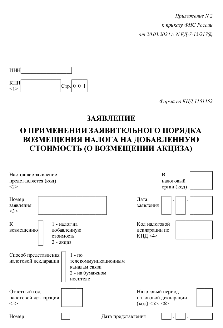 Используется:Налогоплательщиками НДС, применяющими заявительный порядок возмещения НДС