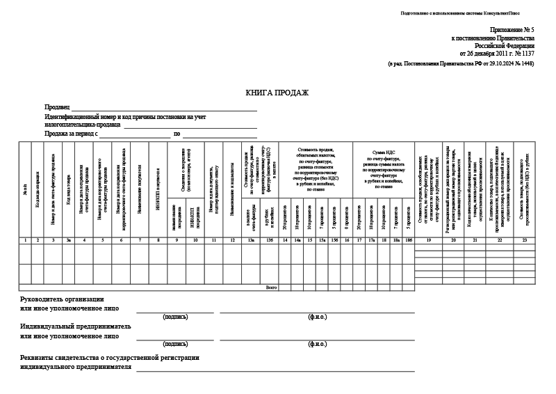 Форма утверждена:Постановлением Правительства РФ от 26 декабря 2011 г. № 1137 в редакции Постановления Правительства РФ от 29 октября 2024 г. № 1448