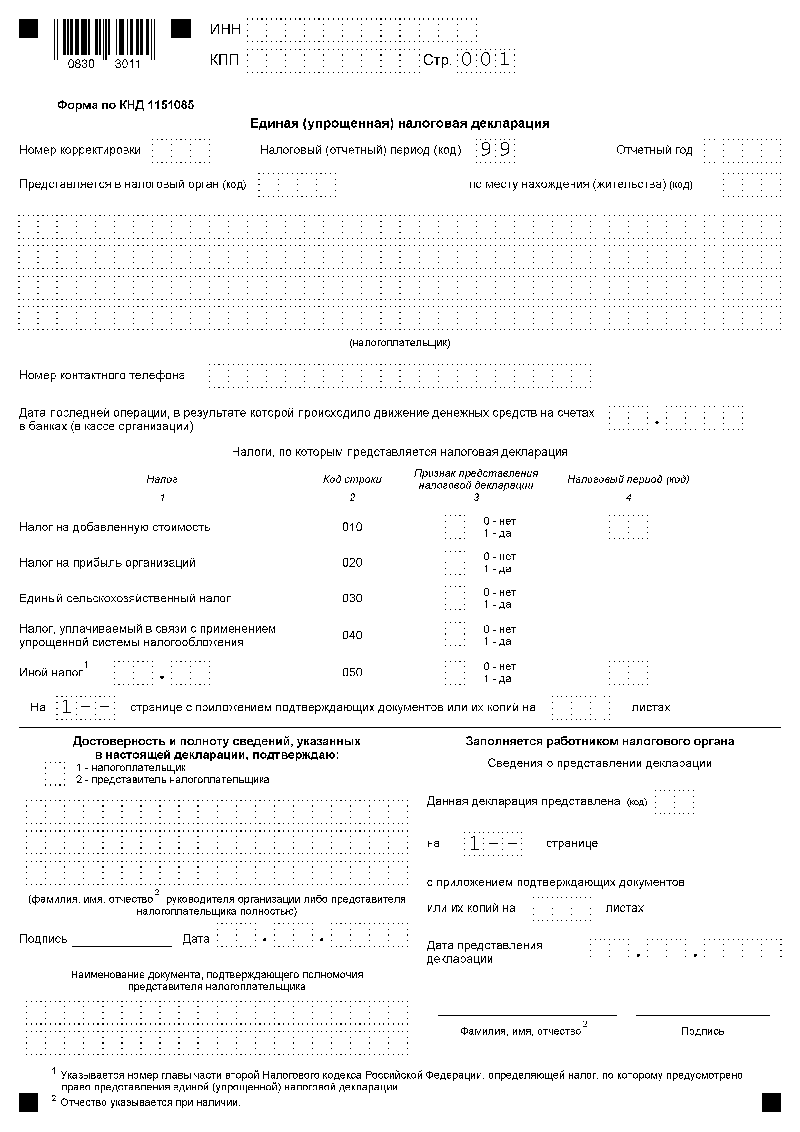 Единая упрощенная декларация (с 1 квартала 2026 года)