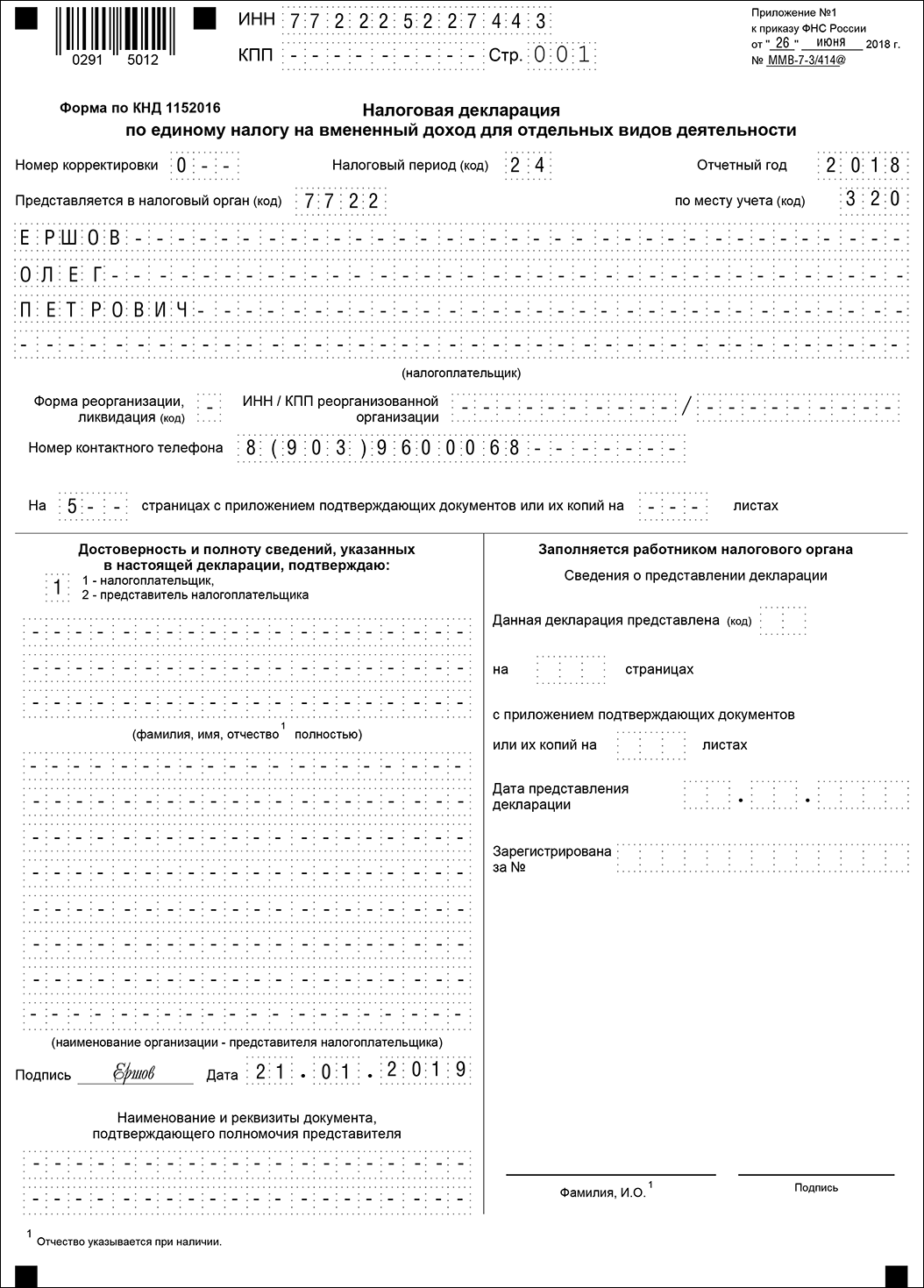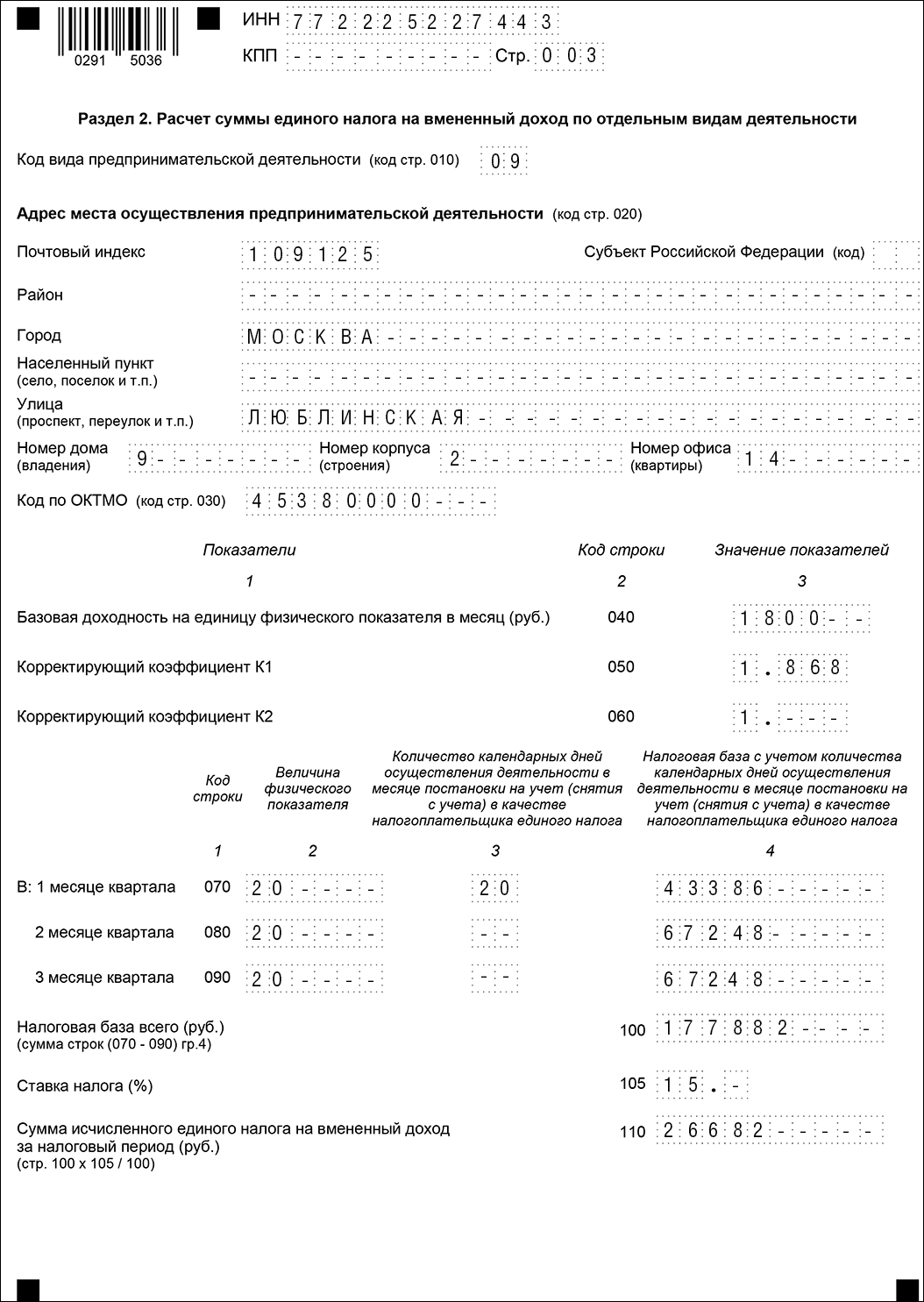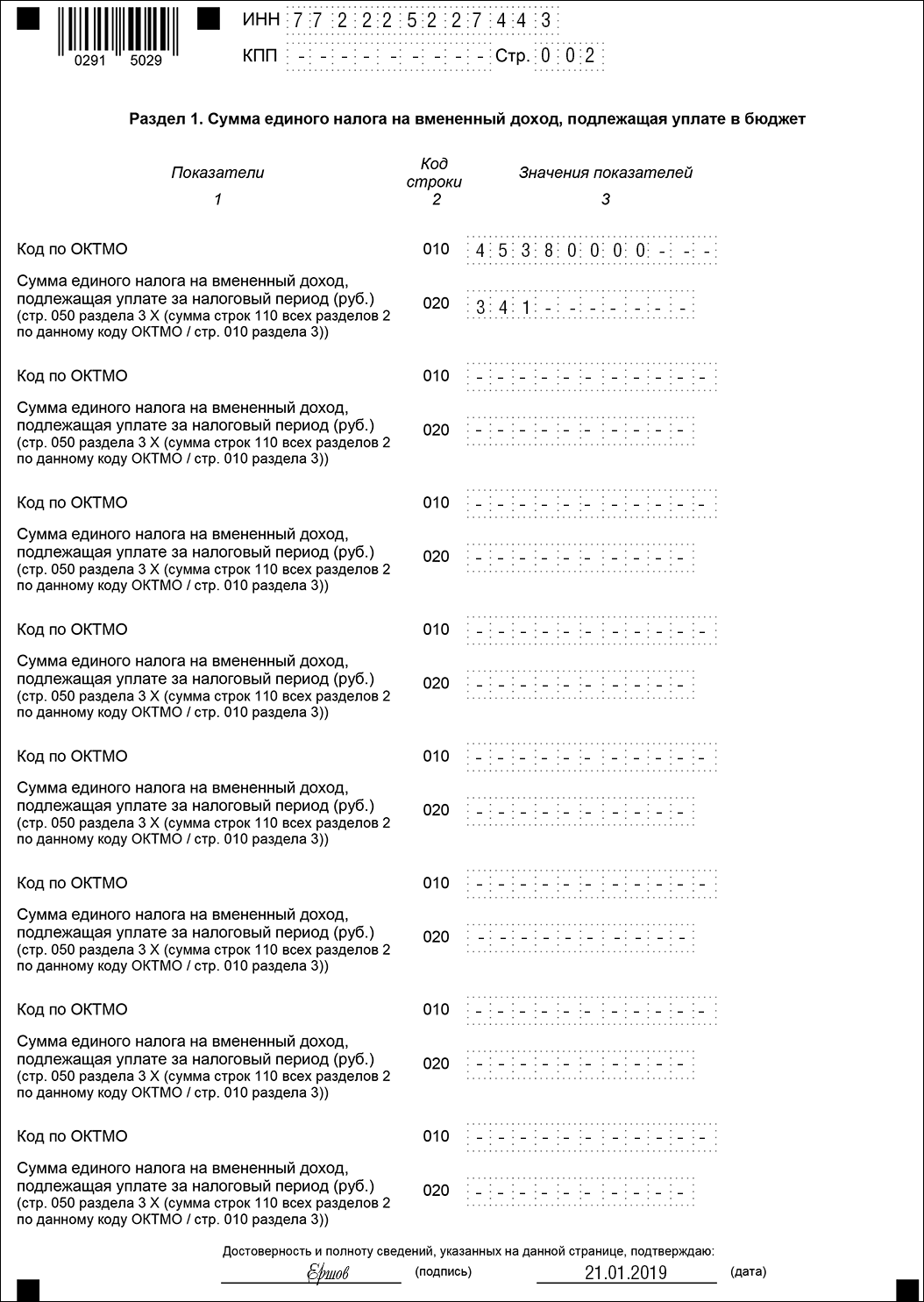 Налоговая декларация по единому налогу на вмененный доход для отдельных видов деятельности