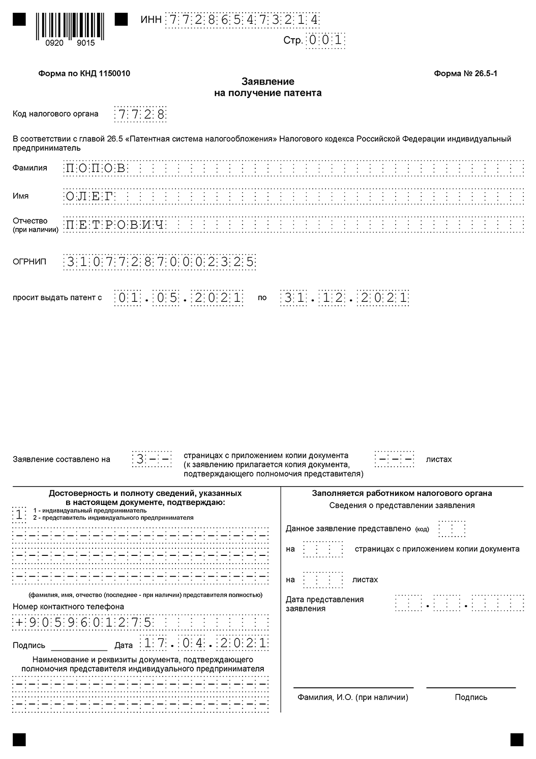 Используется:предпринимателями, которые хотят применять патентную систему налогообложения
