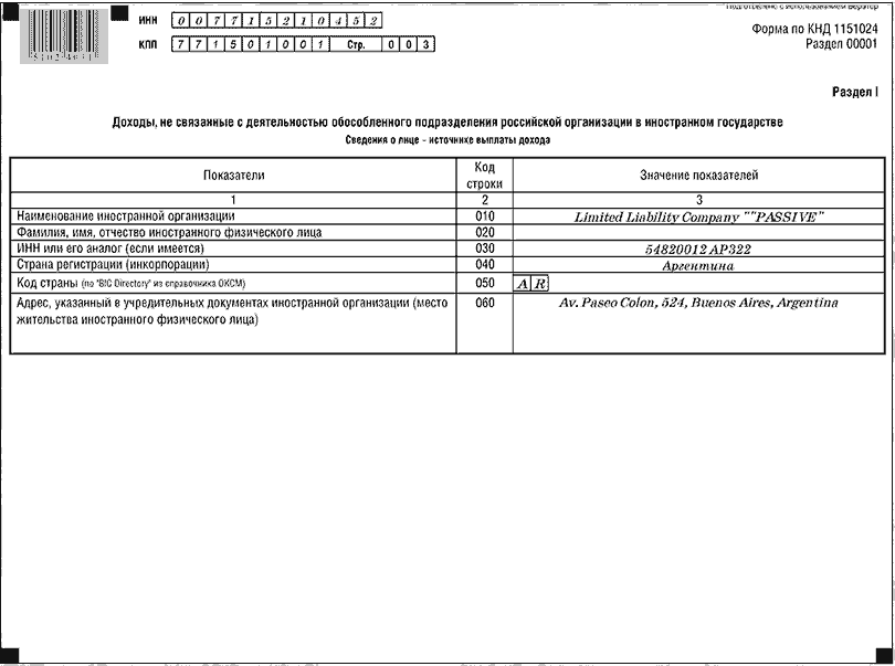 Налоговая декларация о доходах, полученных российской организацией от источников за пределами Российской Федерации
