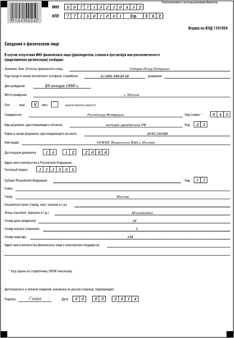 Форма утверждена:приказом МНС России от 23 декабря 2003 г. № БГ-3-23/709
