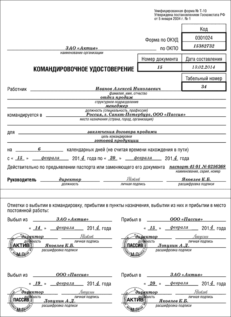 Используется:для выдачи сотрудникам, которые направляются в командировку