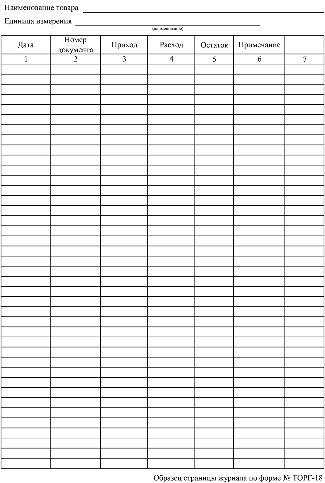 Журнал учета товаров на складе (форма № ТОРГ-18)