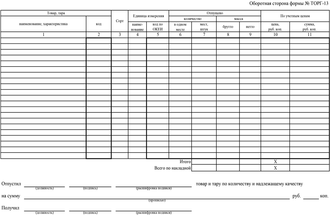 Накладная на внутреннее перемещение, передачу товаров, тары (форма № ТОРГ-13)